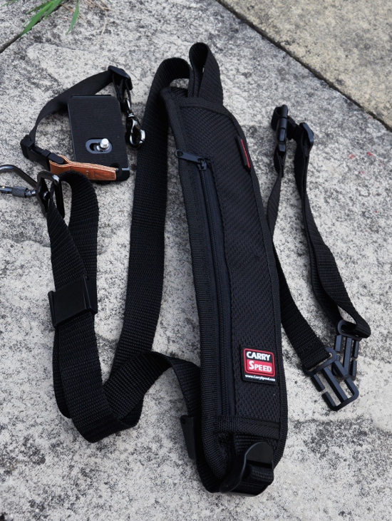 Instead of copying the Black Rapid strap, Carry Speed took the sling strap and put their own stamp on it. Designed in Houston, Texas, it gets some good reviews on YouTube and is good value for money, so I was interested to see how it stood up against the Q Strap. The strap is available from their website, but if you’re outside Canada or the US, you’ll only be able to get it on eBay. It costs £17.95 with Express international postage costing about as much again, so factor that in if you’re a foreigner like me.
